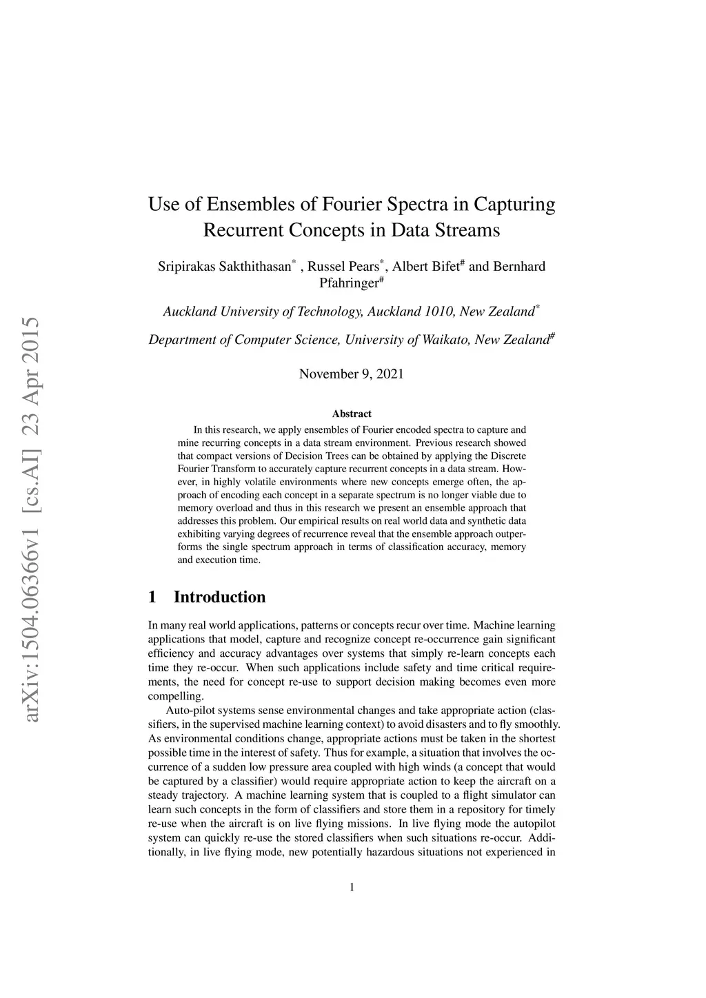 Use of Ensembles of Fourier Spectra in Capturing Recurrent Concepts in