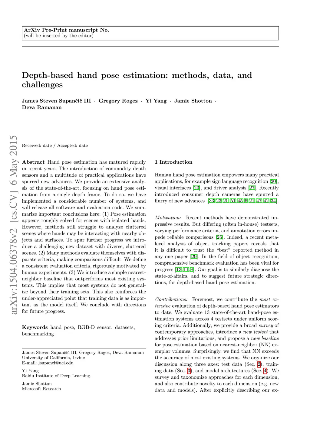 Hand pose estimation has matured rapidly in recent years. The introduction of commodity depth sensors and a multitude of practical applications have spurred new advances. We provide an extensive analysis of the state-of-the-art, focusing on hand pose estimation from a single depth frame. To do so, we have implemented a considerable number of systems, and will release all software and evaluation code. We summarize important conclusions here: (1) Pose estimation appears roughly solved for scenes with isolated hands. However, methods still struggle to analyze cluttered scenes where hands may be interacting with nearby objects and surfaces. To spur further progress we introduce a challenging new dataset with diverse, cluttered scenes. (2) Many methods evaluate themselves with disparate criteria, making comparisons difficult. We define a consistent evaluation criteria, rigorously motivated by human experiments. (3) We introduce a simple nearest-neighbor baseline that outperforms most existing systems. This implies that most systems do not generalize beyond their training sets. This also reinforces the under-appreciated point that training data is as important as the model itself. We conclude with directions for future progress.