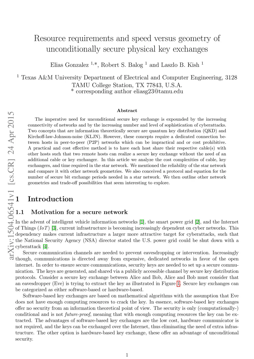 The imperative need for unconditional secure key exchange is expounded by the increasing connectivity of networks and by the increasing number and level of sophistication of cyberattacks. Two concepts that are information theoretically secure are quantum key distribution (QKD) and Kirchoff-law-Johnson-noise (KLJN). However, these concepts require a dedicated connection between hosts in peer-to-peer (P2P) networks which can be impractical and or cost prohibitive. A practical and cost effective method is to have each host share their respective cable(s) with other hosts such that two remote hosts can realize a secure key exchange without the need of an additional cable or key exchanger. In this article we analyze the cost complexities of cable, key exchangers, and time required in the star network. We mentioned the reliability of the star network and compare it with other network geometries. We also conceived a protocol and equation for the number of secure bit exchange periods needed in a star network. We then outline other network geometries and trade-off possibilities that seem interesting to explore.