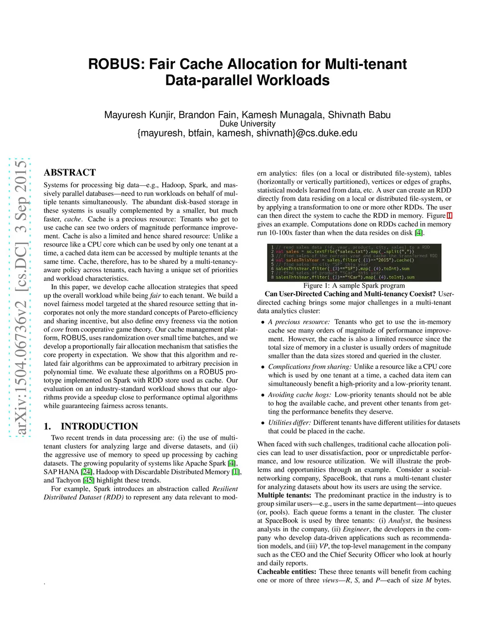 ROBUS: Fair Cache Allocation for Multi-tenant Data-parallel Workloads