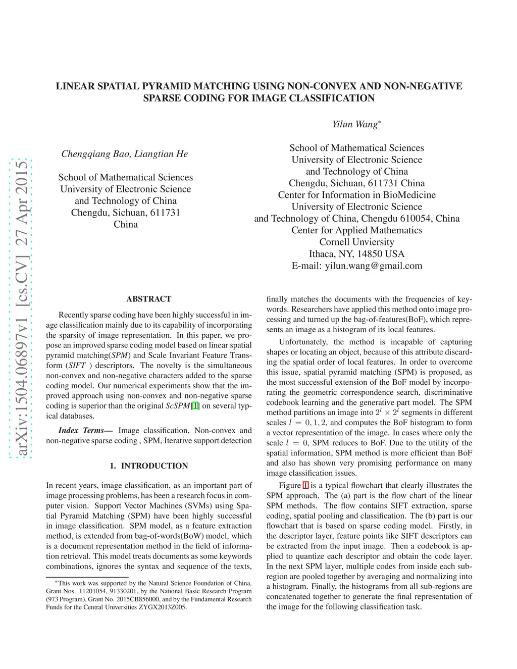 Linear Spatial Pyramid Matching Using Non-convex and non-negative Sparse