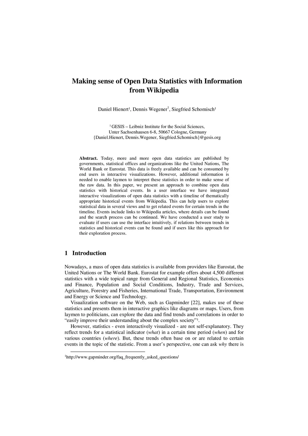 Today, more and more open data statistics are published by governments, statistical offices and organizations like the United Nations, The World Bank or Eurostat. This data is freely available and can be consumed by end users in interactive visualizations. However, additional information is needed to enable laymen to interpret these statistics in order to make sense of the raw data. In this paper, we present an approach to combine open data statistics with historical events. In a user interface we have integrated interactive visualizations of open data statistics with a timeline of thematically appropriate historical events from Wikipedia. This can help users to explore statistical data in several views and to get related events for certain trends in the timeline. Events include links to Wikipedia articles, where details can be found and the search process can be continued. We have conducted a user study to evaluate if users can use the interface intuitively, if relations between trends in statistics and historical events can be found and if users like this approach for their exploration process.