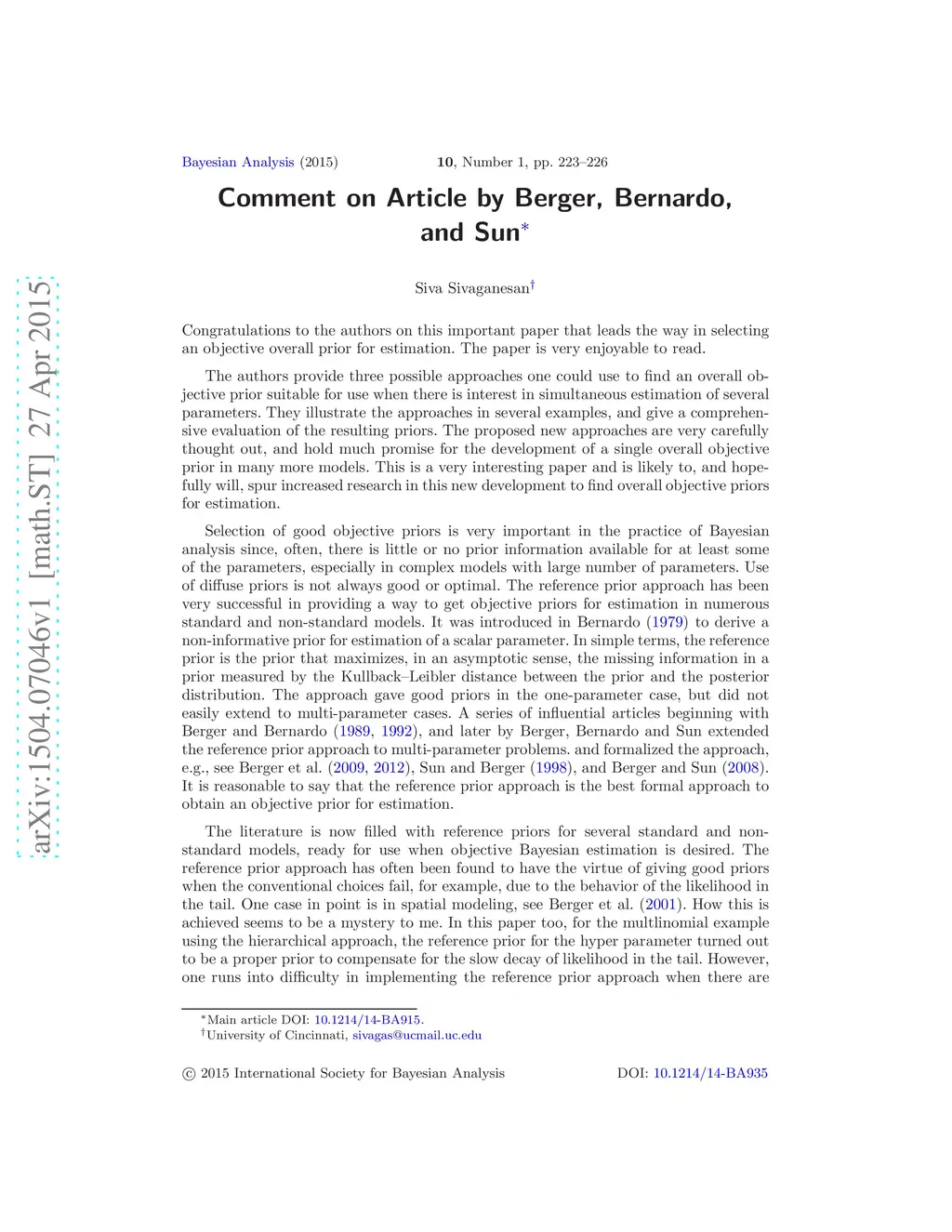 Discussion of Overall Objective Priors by James O. Berger, Jose M. Bernardo, Dongchu Sun [arXiv:1504.02689].