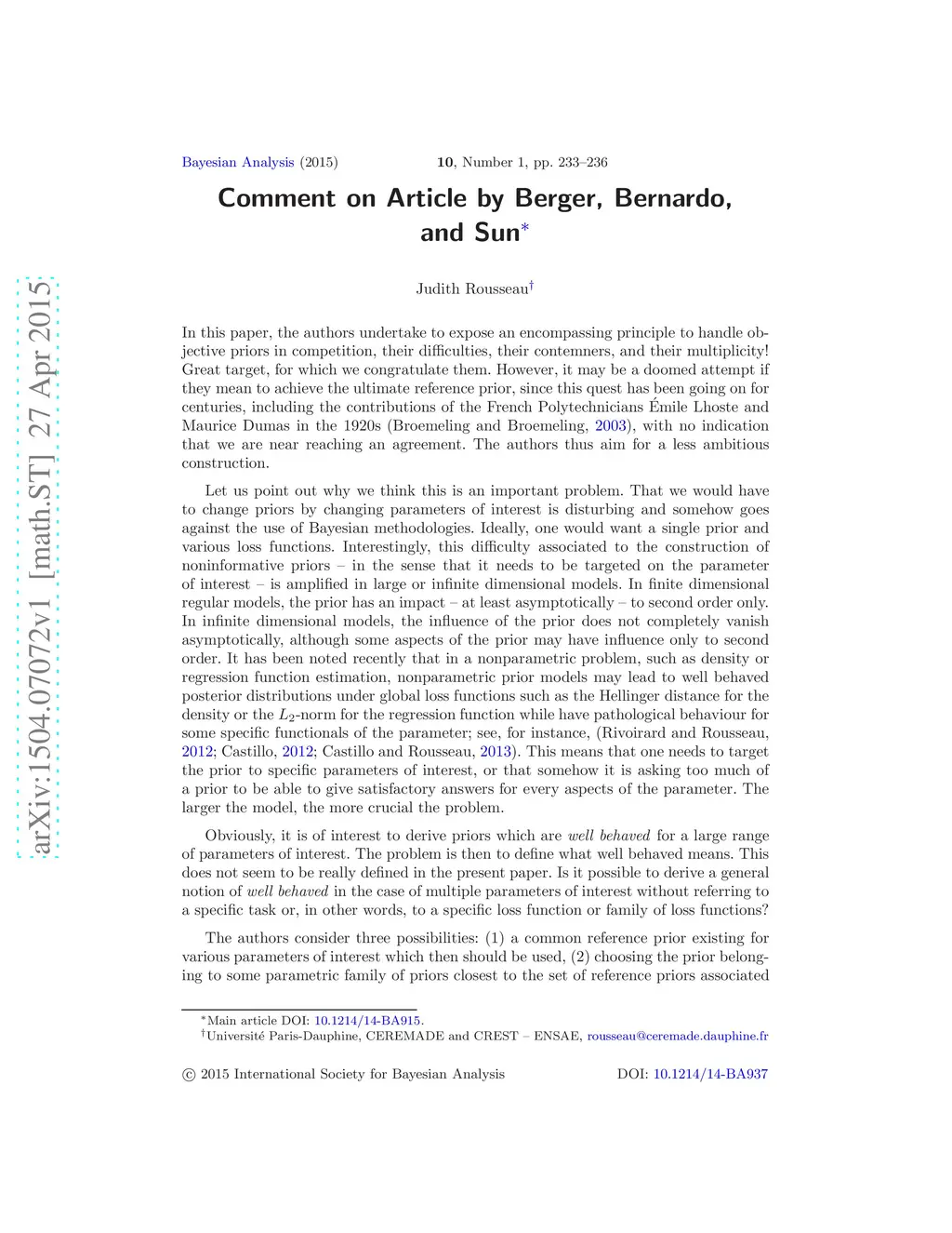 Discussion of Overall Objective Priors by James O. Berger, Jose M. Bernardo, Dongchu Sun [arXiv:1504.02689].