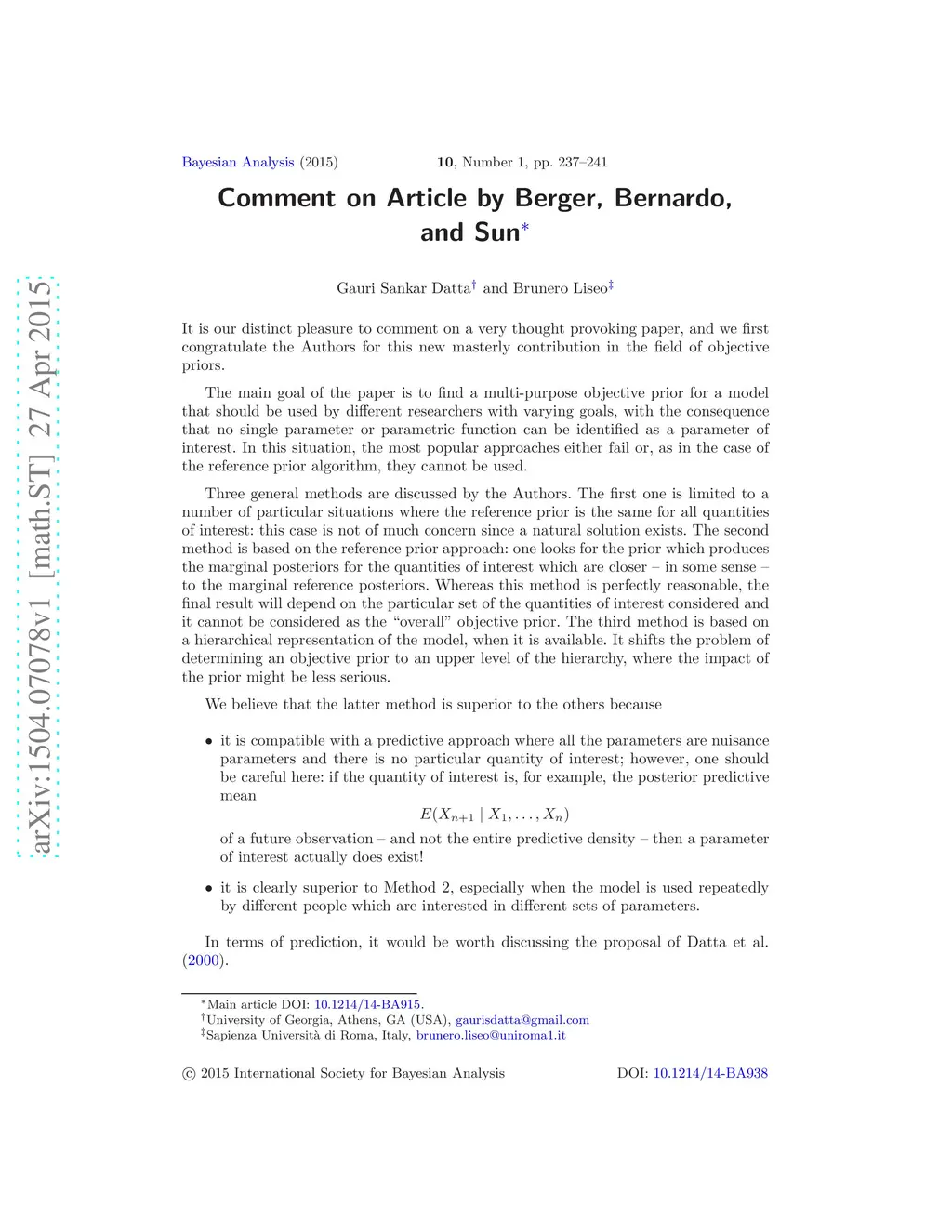Discussion of Overall Objective Priors by James O. Berger, Jose M. Bernardo, Dongchu Sun [arXiv:1504.02689].
