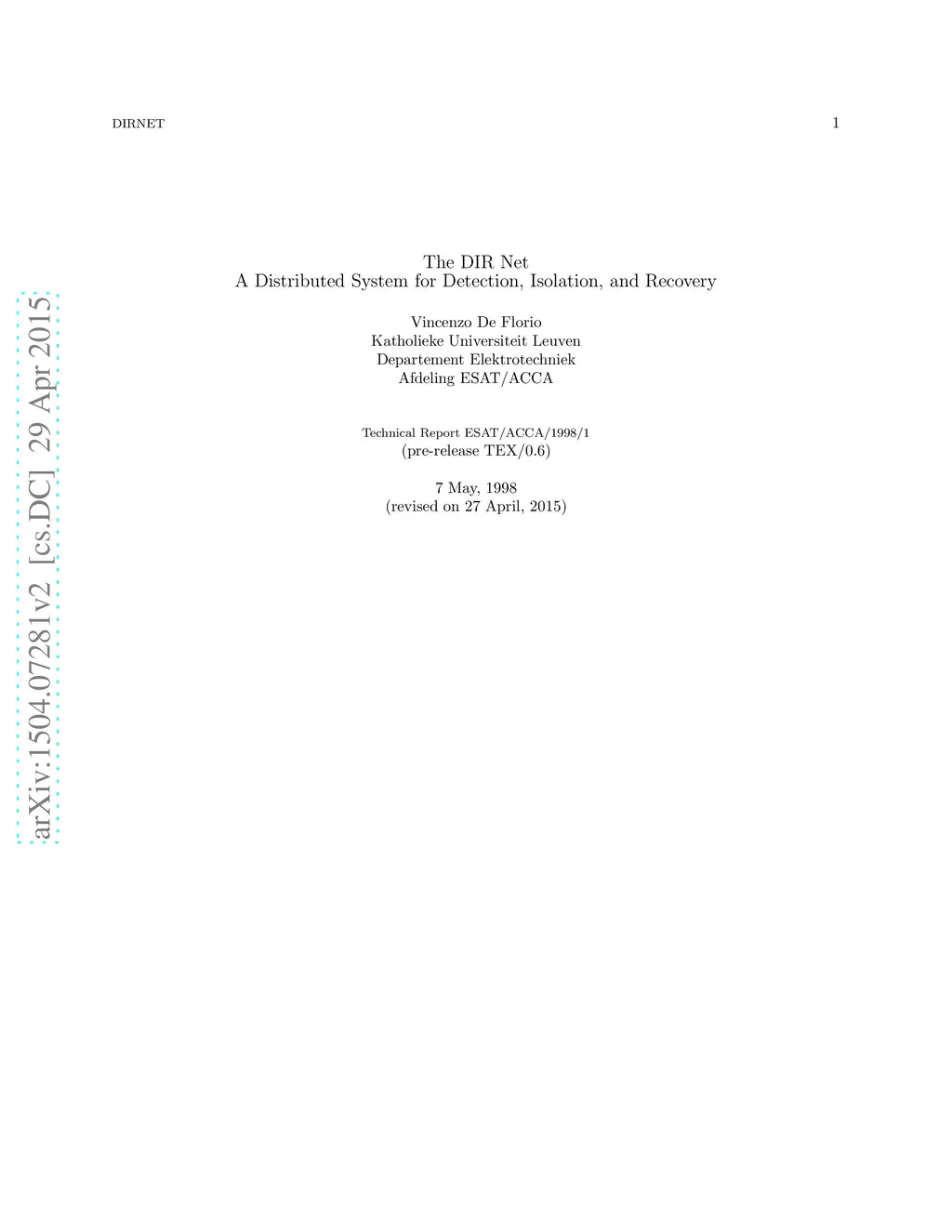 The DIR Net: A Distributed System for Detection, Isolation, and Recovery
