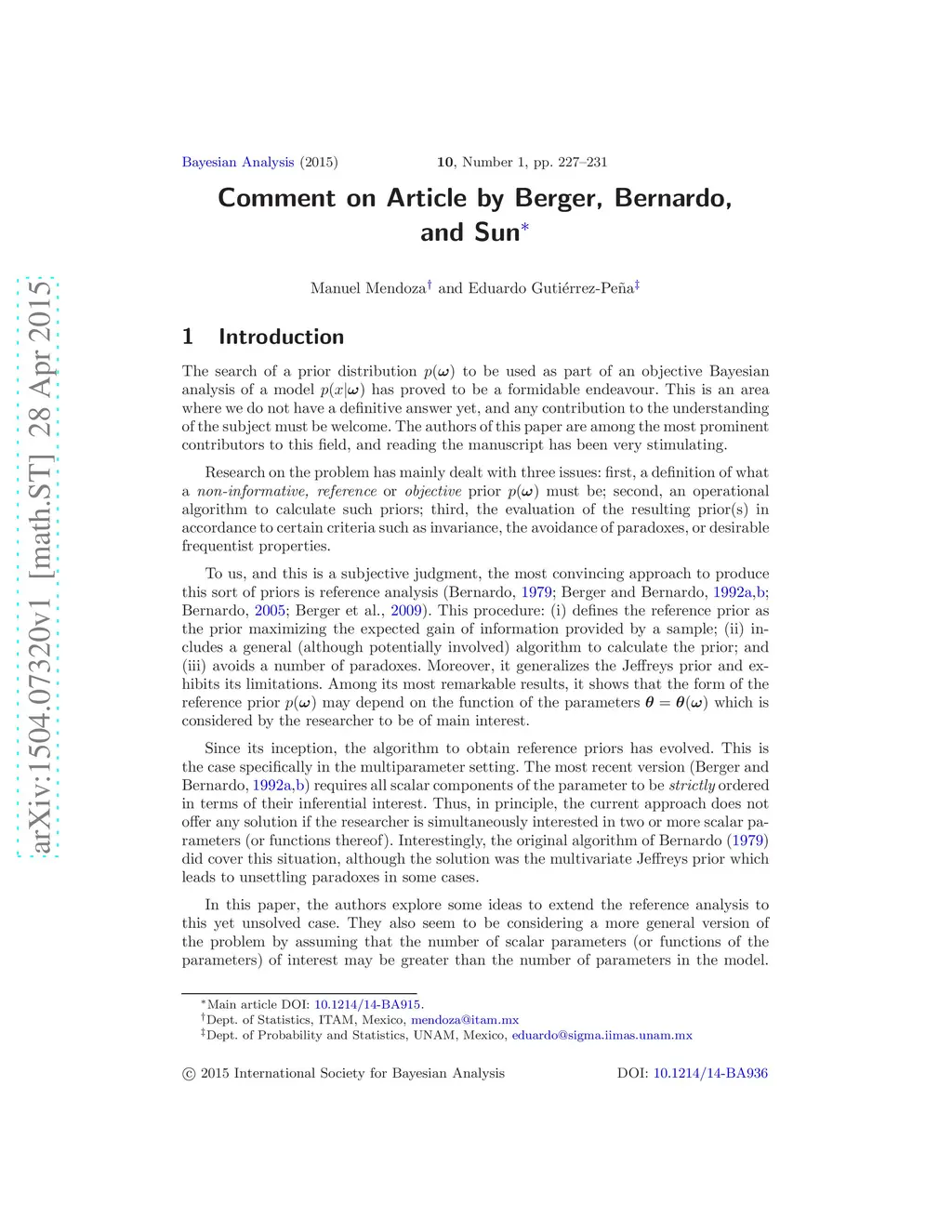 Discussion of Overall Objective Priors by James O. Berger, Jose M. Bernardo, Dongchu Sun [arXiv:1504.02689].