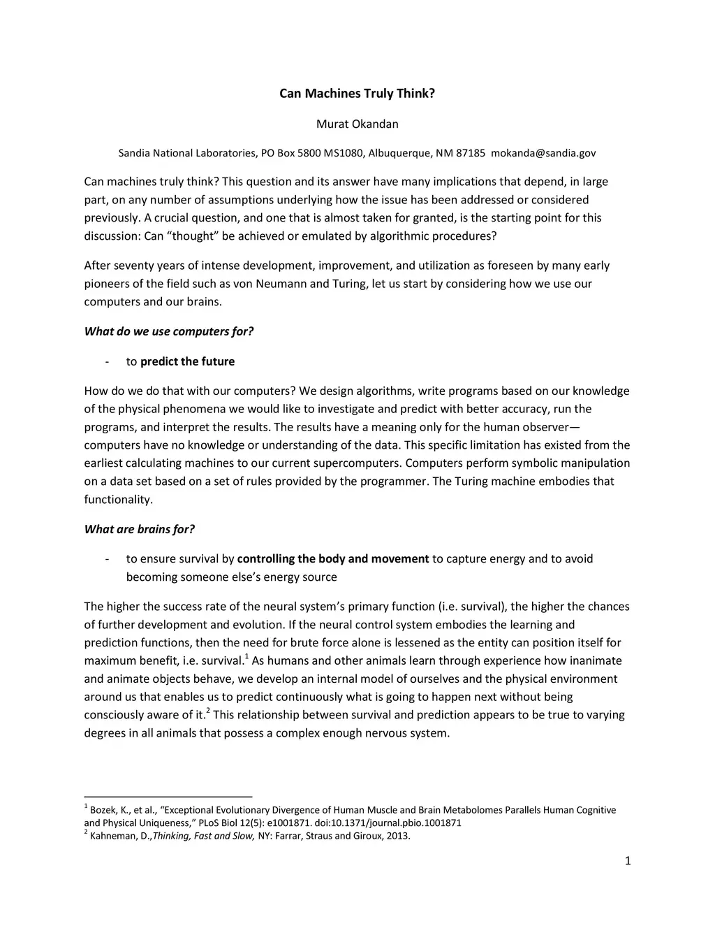 Can machines truly think? This question and its answer have many implications that depend, in large part, on any number of assumptions underlying how the issue has been addressed or considered previously. A crucial question, and one that is almost taken for granted, is the starting point for this discussion: Can "thought" be achieved or emulated by algorithmic procedures?