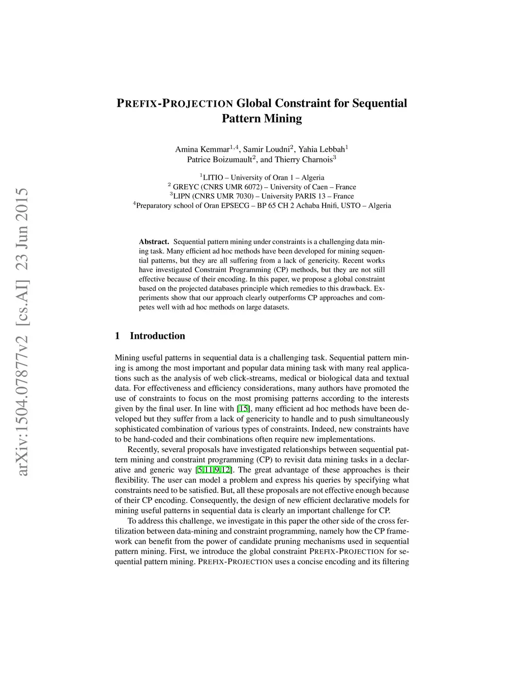 Prefix-Projection Global Constraint for Sequential Pattern Mining