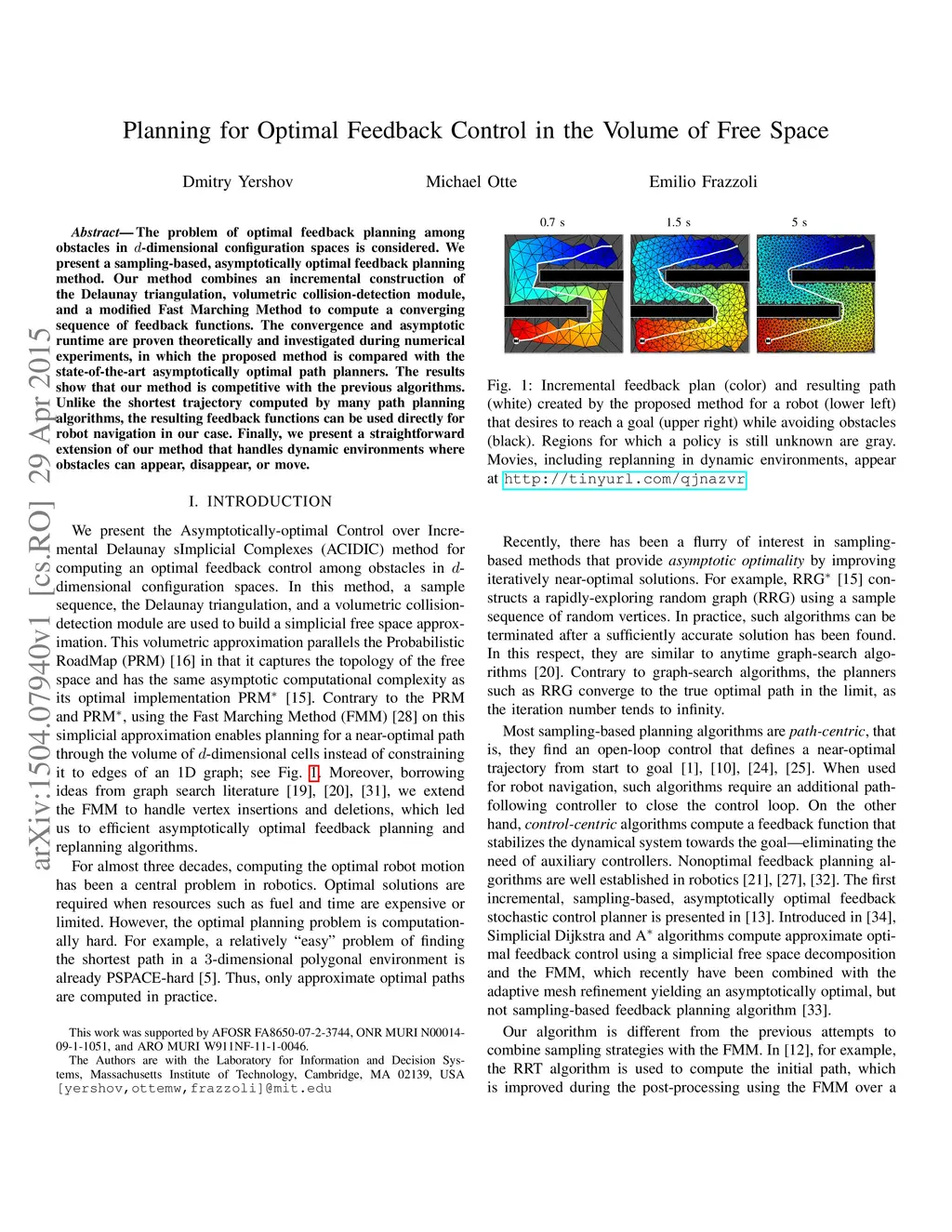 The problem of optimal feedback planning among obstacles in d-dimensional configuration spaces is considered. We present a sampling-based, asymptotically optimal feedback planning method. Our method combines an incremental construction of the Delaunay triangulation, volumetric collision-detection module, and a modified Fast Marching Method to compute a converging sequence of feedback functions. The convergence and asymptotic runtime are proven theoretically and investigated during numerical experiments, in which the proposed method is compared with the state-of-the-art asymptotically optimal path planners. The results show that our method is competitive with the previous algorithms. Unlike the shortest trajectory computed by many path planning algorithms, the resulting feedback functions can be used directly for robot navigation in our case. Finally, we present a straightforward extension of our method that handles dynamic environments where obstacles can appear, disappear, or move.