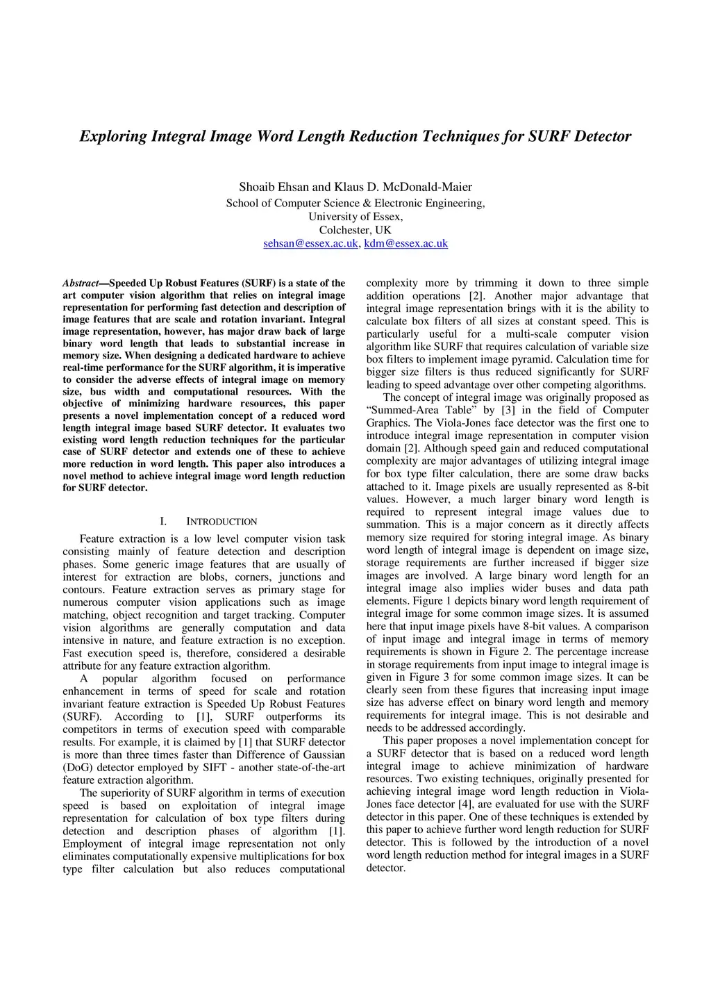Exploring Integral Image Word Length Reduction Techniques for SURF