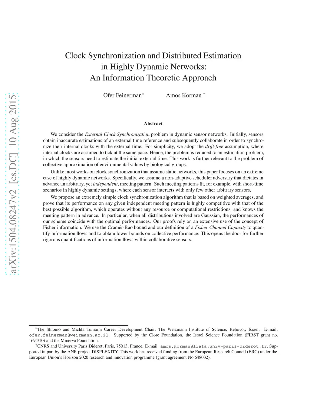 We consider the External Clock Synchronization problem in dynamic sensor networks. Initially, sensors obtain inaccurate estimations of an external time reference and subsequently collaborate in order to synchronize their internal clocks with the external time. For simplicity, we adopt the drift-free assumption, where internal clocks are assumed to tick at the same pace. Hence, the problem is reduced to an estimation problem, in which the sensors need to estimate the initial external time. This work is further relevant to the problem of collective approximation of environmental values by biological groups. Unlike most works on clock synchronization that assume static networks, this paper focuses on an extreme case of highly dynamic networks. Specifically, we assume a non-adaptive scheduler adversary that dictates in advance an arbitrary, yet independent, meeting pattern. Such meeting patterns fit, for example, with short-time scenarios in highly dynamic settings, where each sensor interacts with only few other arbitrary sensors. We propose an extremely simple clock synchronization algorithm that is based on weighted averages, and prove that its performance on any given independent meeting pattern is highly competitive with that of the best possible algorithm, which operates without any resource or computational restrictions, and knows the meeting pattern in advance. In particular, when all distributions involved are Gaussian, the performances of our scheme coincide with the optimal performances. Our proofs rely on an extensive use of the concept of Fisher information. We use the Cramer-Rao bound and our definition of a Fisher Channel Capacity to quantify information flows and to obtain lower bounds on collective performance. This opens the door for further rigorous quantifications of information flows within collaborative sensors.