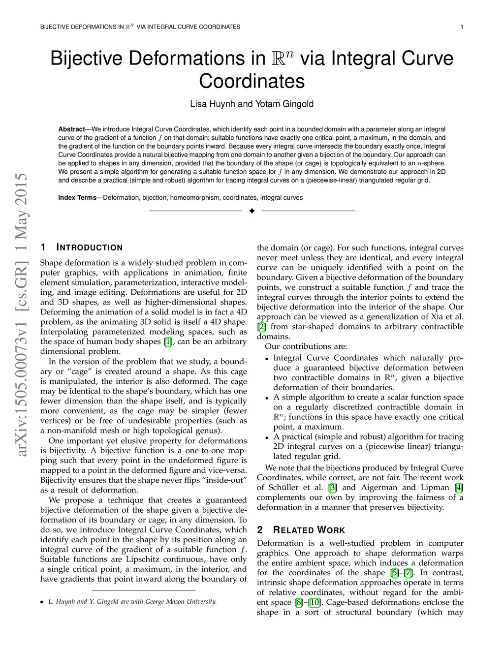 We introduce Integral Curve Coordinates, which identify each point in a bounded domain with a parameter along an integral curve of the gradient of a function on that domain; suitable functions have exactly one critical point, a maximum, in the domain, and the gradient of the function on the boundary points inward. Because every integral curve intersects the boundary exactly once, Integral Curve Coordinates provide a natural bijective mapping from one domain to another given a bijection of the boundary. Our approach can be applied to shapes in any dimension, provided that the boundary of the shape (or cage) is topologically equivalent to an -sphere. We present a simple algorithm for generating a suitable function space for in any dimension. We demonstrate our approach in 2D and describe a practical (simple and robust) algorithm for tracing integral curves on a (piecewise-linear) triangulated regular grid.