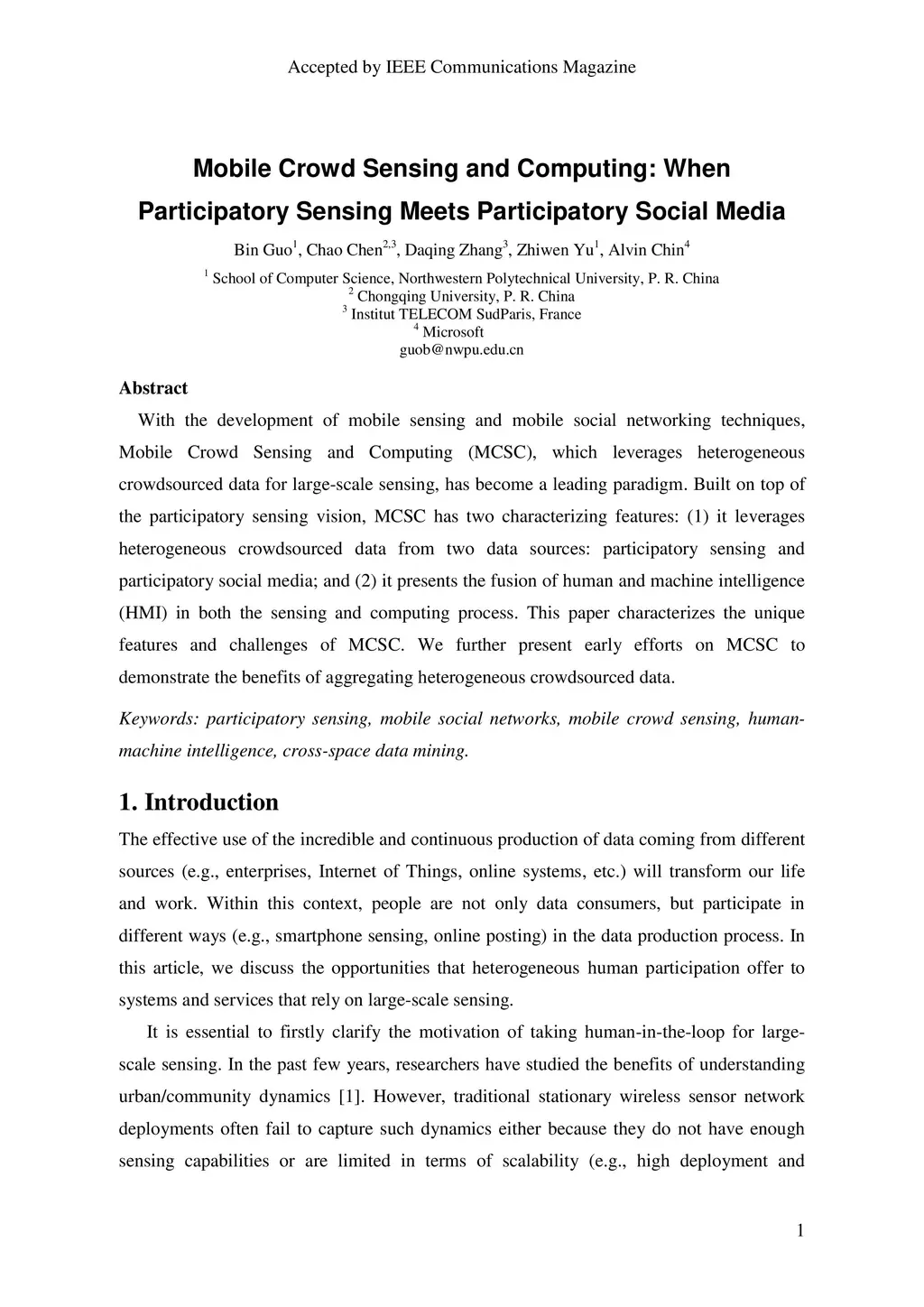 With the development of mobile sensing and mobile social networking techniques, Mobile Crowd Sensing and Computing (MCSC), which leverages heterogeneous crowdsourced data for large-scale sensing, has become a leading paradigm. Built on top of the participatory sensing vision, MCSC has two characterizing features: (1) it leverages heterogeneous crowdsourced data from two data sources: participatory sensing and participatory social media; and (2) it presents the fusion of human and machine intelligence (HMI) in both the sensing and computing process. This paper characterizes the unique features and challenges of MCSC. We further present early efforts on MCSC to demonstrate the benefits of aggregating heterogeneous crowdsourced data.