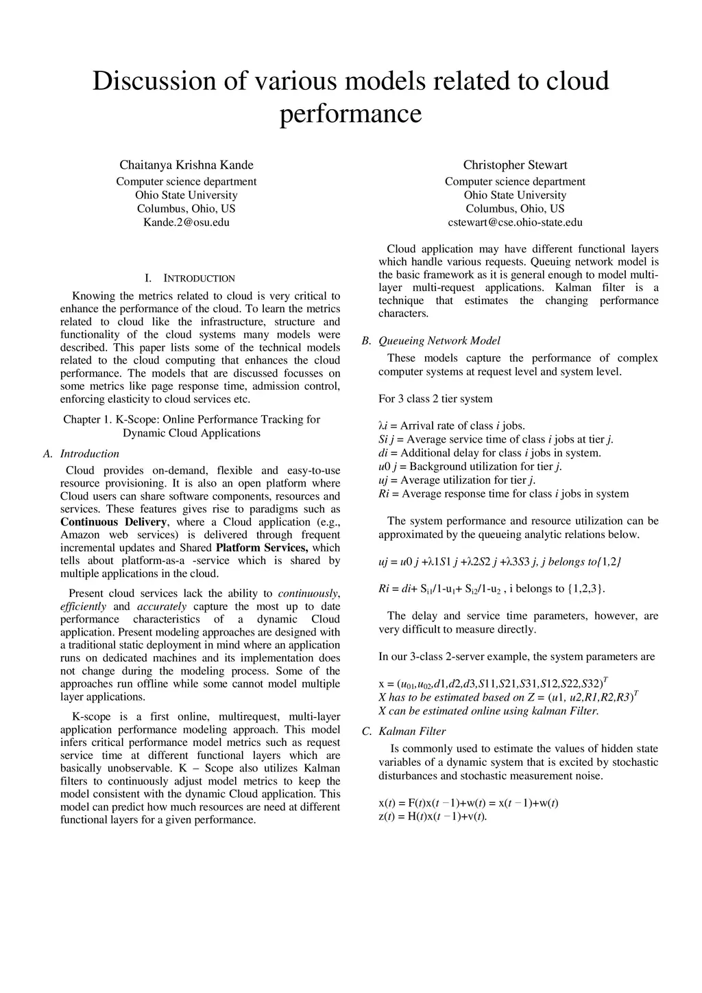 Discussion of various models related to cloud performance