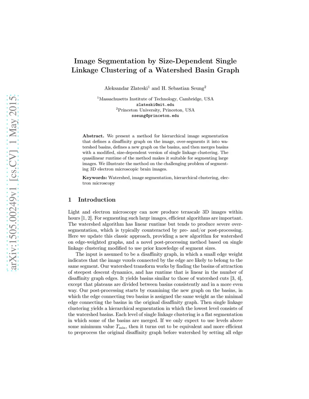 Image Segmentation by Size-Dependent Single Linkage Clustering of a