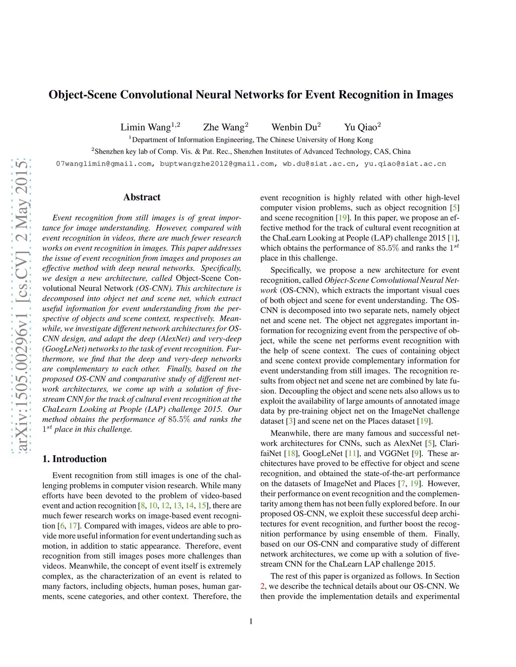 Object-Scene Convolutional Neural Networks for Event Recognition in