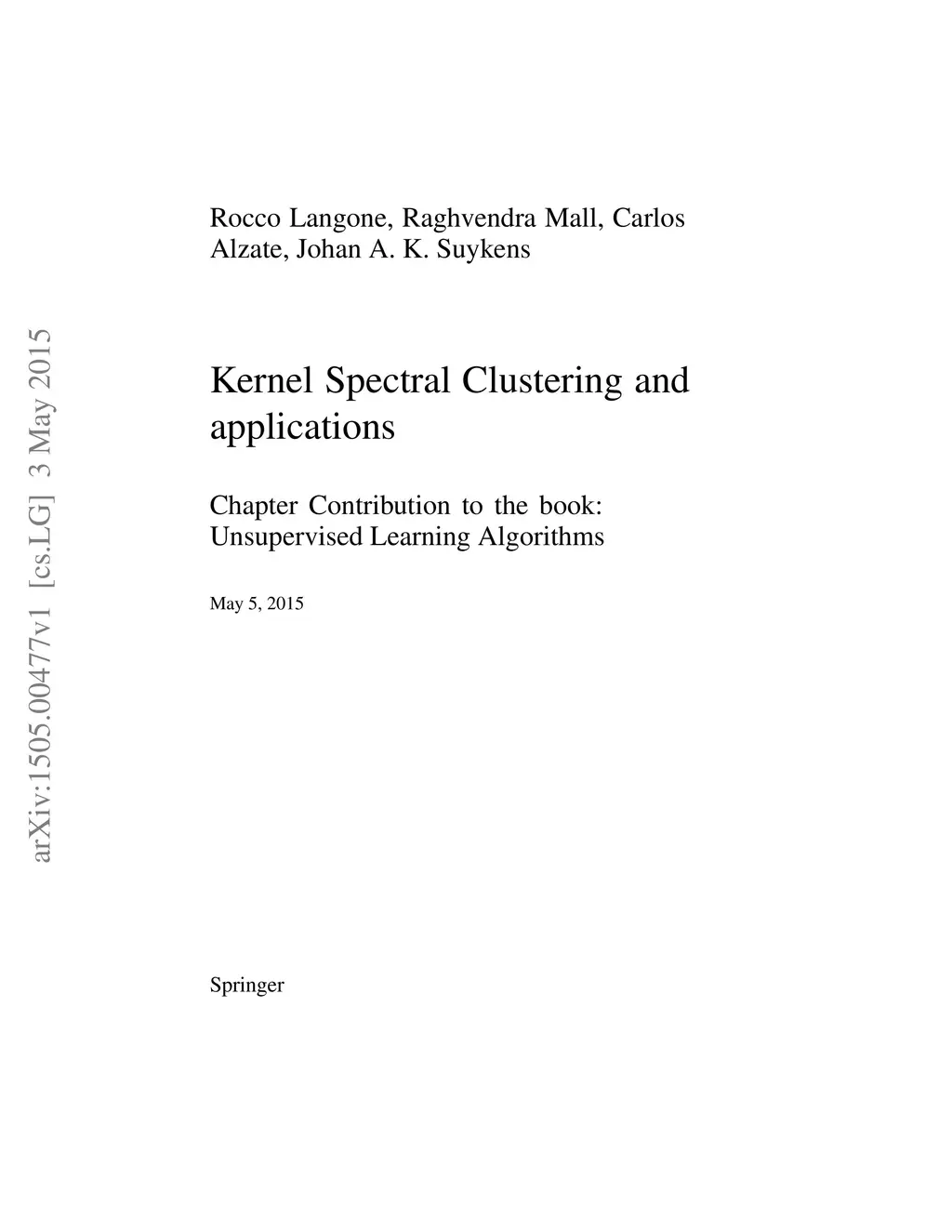 Kernel Spectral Clustering and applications