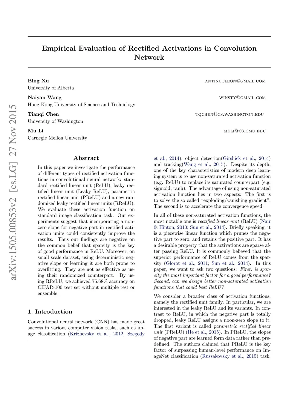 Empirical Evaluation of Rectified Activations in Convolutional Network