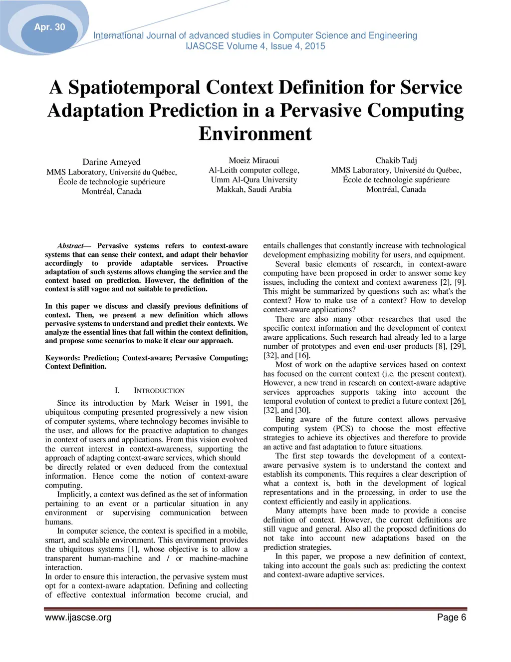 A Spatiotemporal Context Definition for Service Adaptation Prediction in