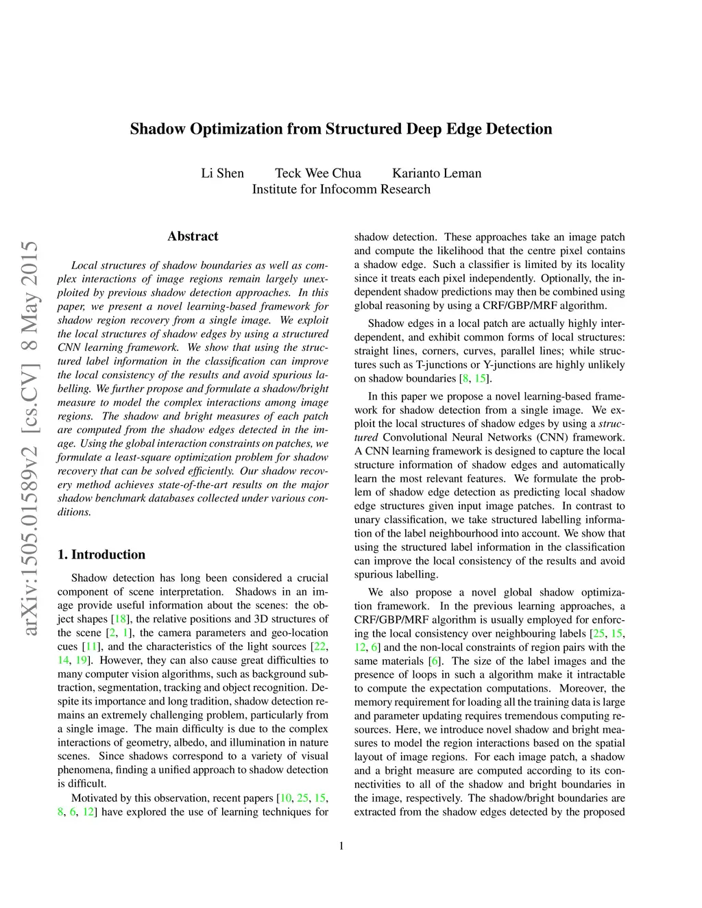 Local structures of shadow boundaries as well as complex interactions of image regions remain largely unexploited by previous shadow detection approaches. In this paper, we present a novel learning-based framework for shadow region recovery from a single image. We exploit the local structures of shadow edges by using a structured CNN learning framework. We show that using the structured label information in the classification can improve the local consistency of the results and avoid spurious labelling. We further propose and formulate a shadow/bright measure to model the complex interactions among image regions. The shadow and bright measures of each patch are computed from the shadow edges detected in the image. Using the global interaction constraints on patches, we formulate a least-square optimization problem for shadow recovery that can be solved efficiently. Our shadow recovery method achieves state-of-the-art results on the major shadow benchmark databases collected under various conditions.