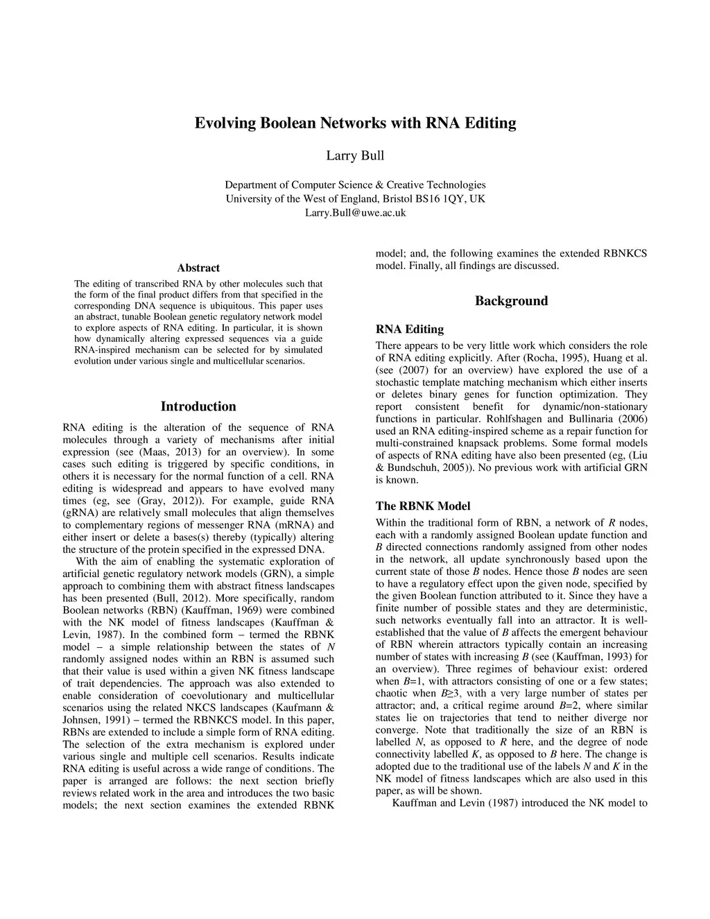 The editing of transcribed RNA by other molecules such that the form of the final product differs from that specified in the corresponding DNA sequence is ubiquitous. This paper uses an abstract, tunable Boolean genetic regulatory network model to explore aspects of RNA editing. In particular, it is shown how dynamically altering expressed sequences via a guide RNA-inspired mechanism can be selected for by simulated evolution under various single and multicellular scenarios.