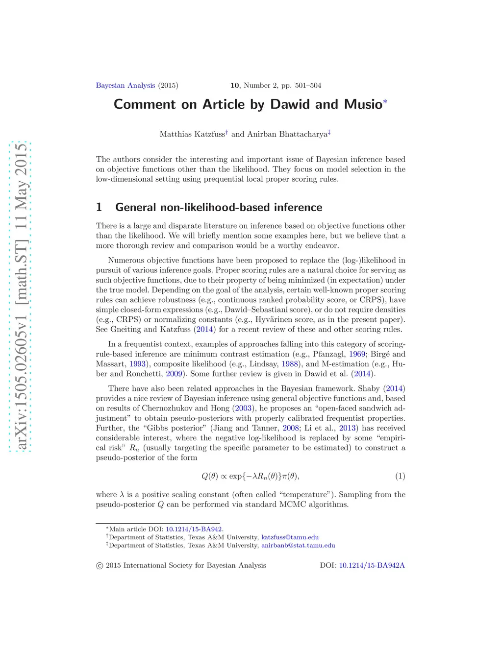 Comment on Article by Dawid and Musio