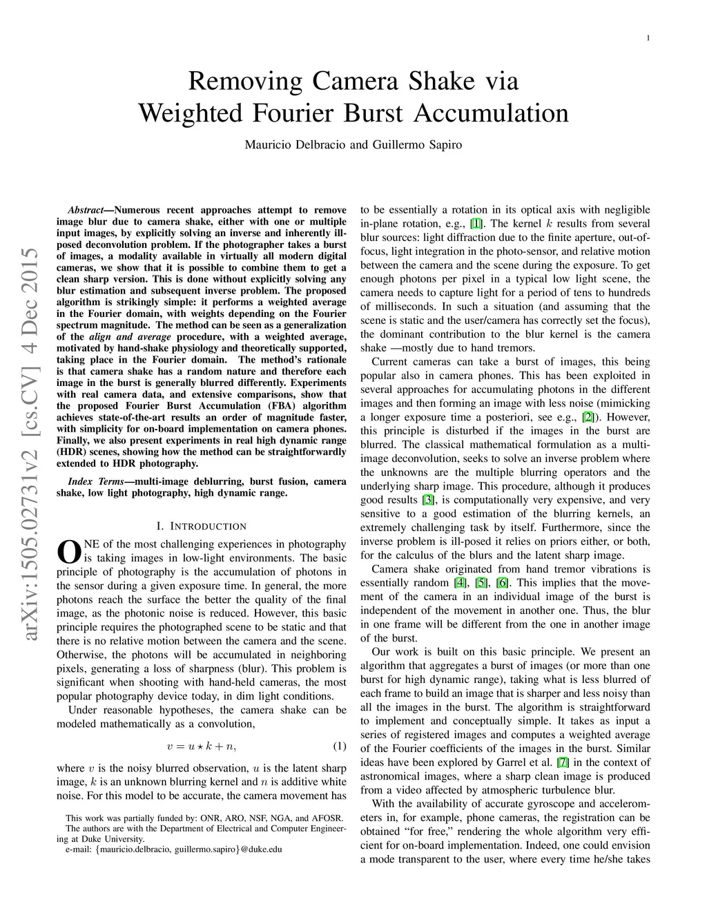 Removing Camera Shake via Weighted Fourier Burst Accumulation