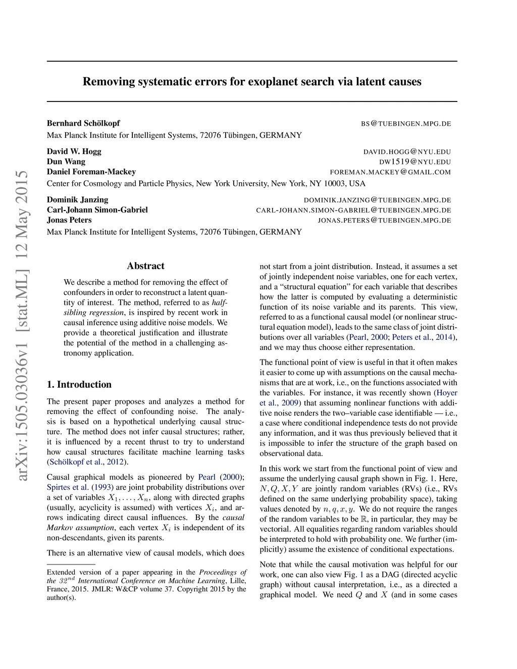Removing systematic errors for exoplanet search via latent causes