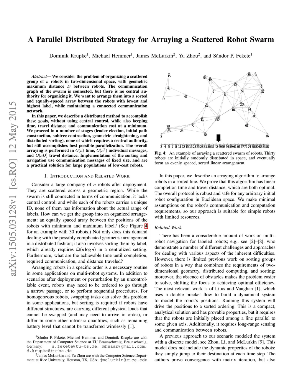 A Parallel Distributed Strategy for Arraying a Scattered Robot Swarm