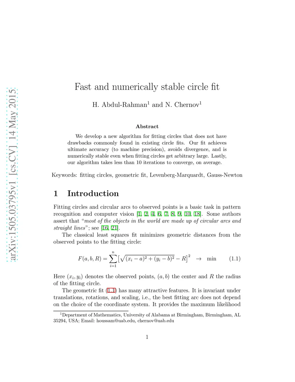 Fast and numerically stable circle fit