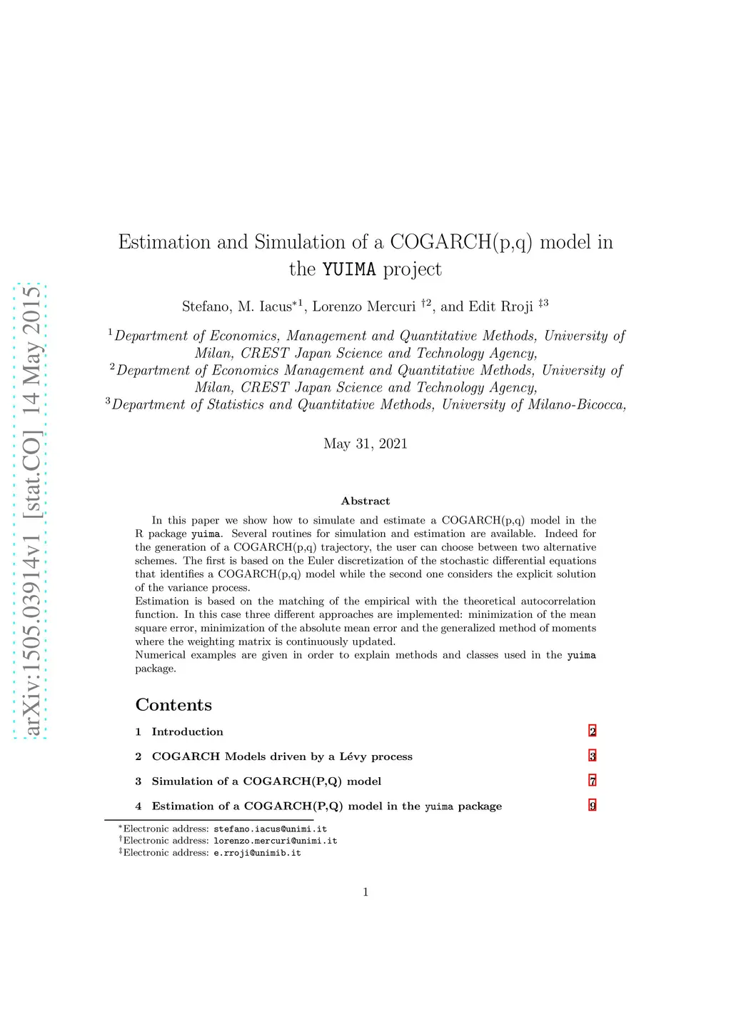 Estimation and Simulation of a COGARCH(p,q) model in the YUIMA project