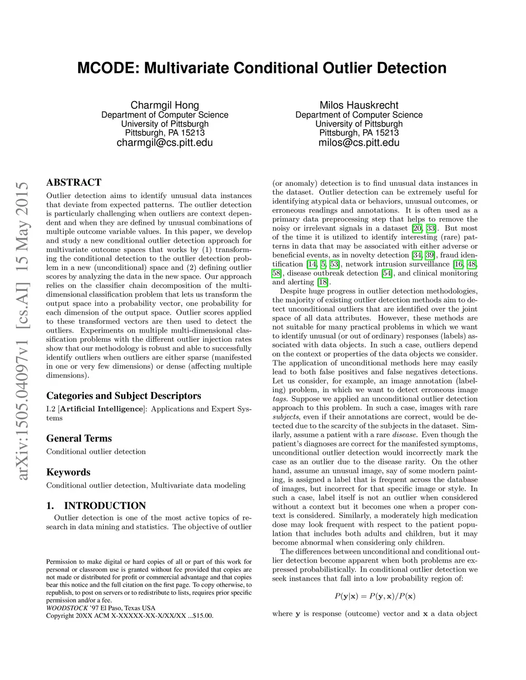 MCODE: Multivariate Conditional Outlier Detection