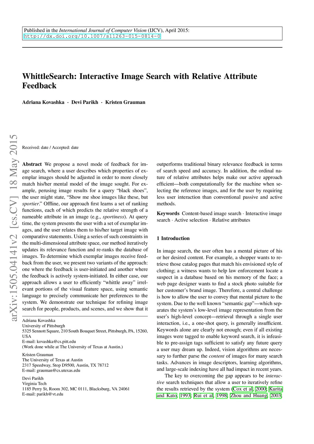 WhittleSearch: Interactive Image Search with Relative Attribute Feedback