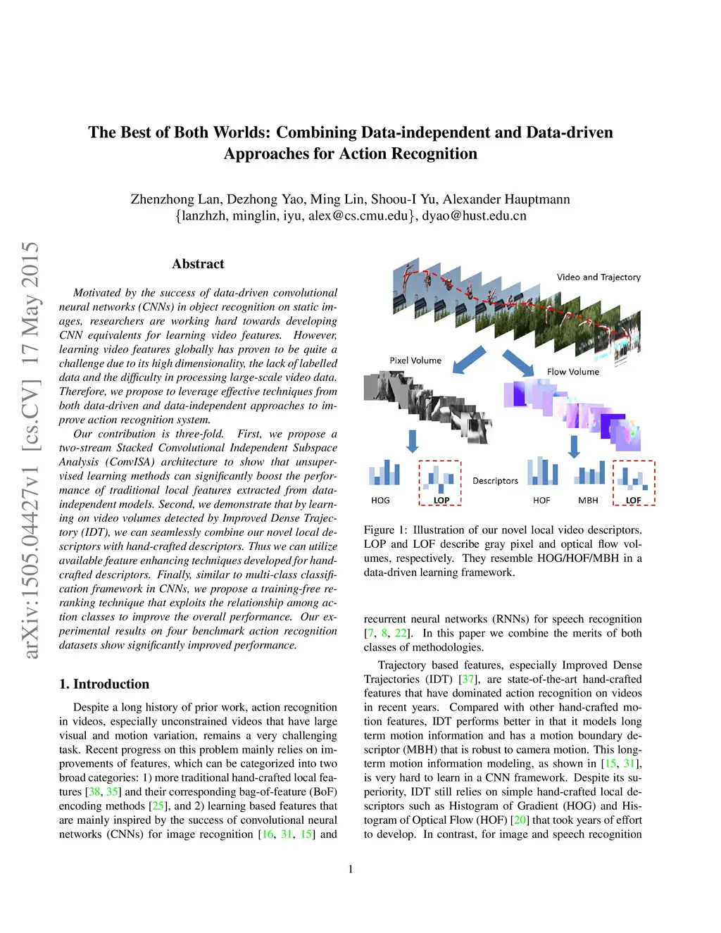 Motivated by the success of data-driven convolutional neural networks (CNNs) in object recognition on static images, researchers are working hard towards developing CNN equivalents for learning video features. However, learning video features globally has proven to be quite a challenge due to its high dimensionality, the lack of labelled data and the difficulty in processing large-scale video data. Therefore, we propose to leverage effective techniques from both data-driven and data-independent approaches to improve action recognition system. Our contribution is three-fold. First, we propose a two-stream Stacked Convolutional Independent Subspace Analysis (ConvISA) architecture to show that unsupervised learning methods can significantly boost the performance of traditional local features extracted from data-independent models. Second, we demonstrate that by learning on video volumes detected by Improved Dense Trajectory (IDT), we can seamlessly combine our novel local descriptors with hand-crafted descriptors. Thus we can utilize available feature enhancing techniques developed for hand-crafted descriptors. Finally, similar to multi-class classification framework in CNNs, we propose a training-free re-ranking technique that exploits the relationship among action classes to improve the overall performance. Our experimental results on four benchmark action recognition datasets show significantly improved performance.