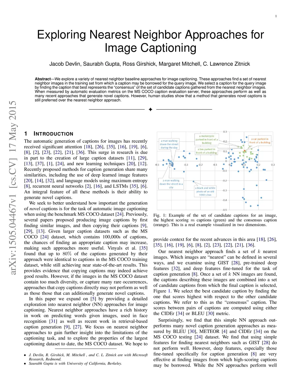 Exploring Nearest Neighbor Approaches for Image Captioning