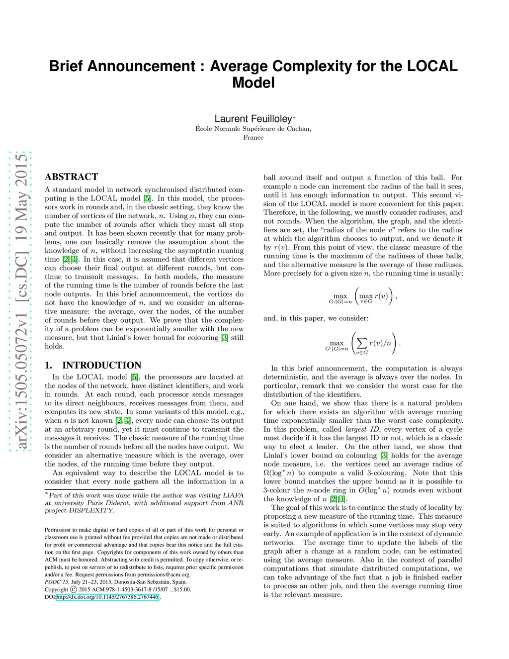 Brief Announcement : Average Complexity for the LOCAL Model