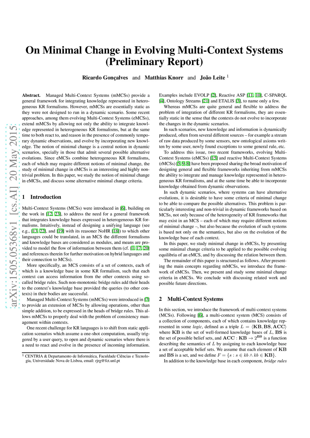 On Minimal Change in Evolving Multi-Context Systems (Preliminary Report)