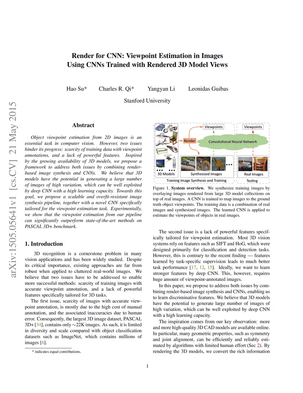 Render for CNN: Viewpoint Estimation in Images Using CNNs Trained with