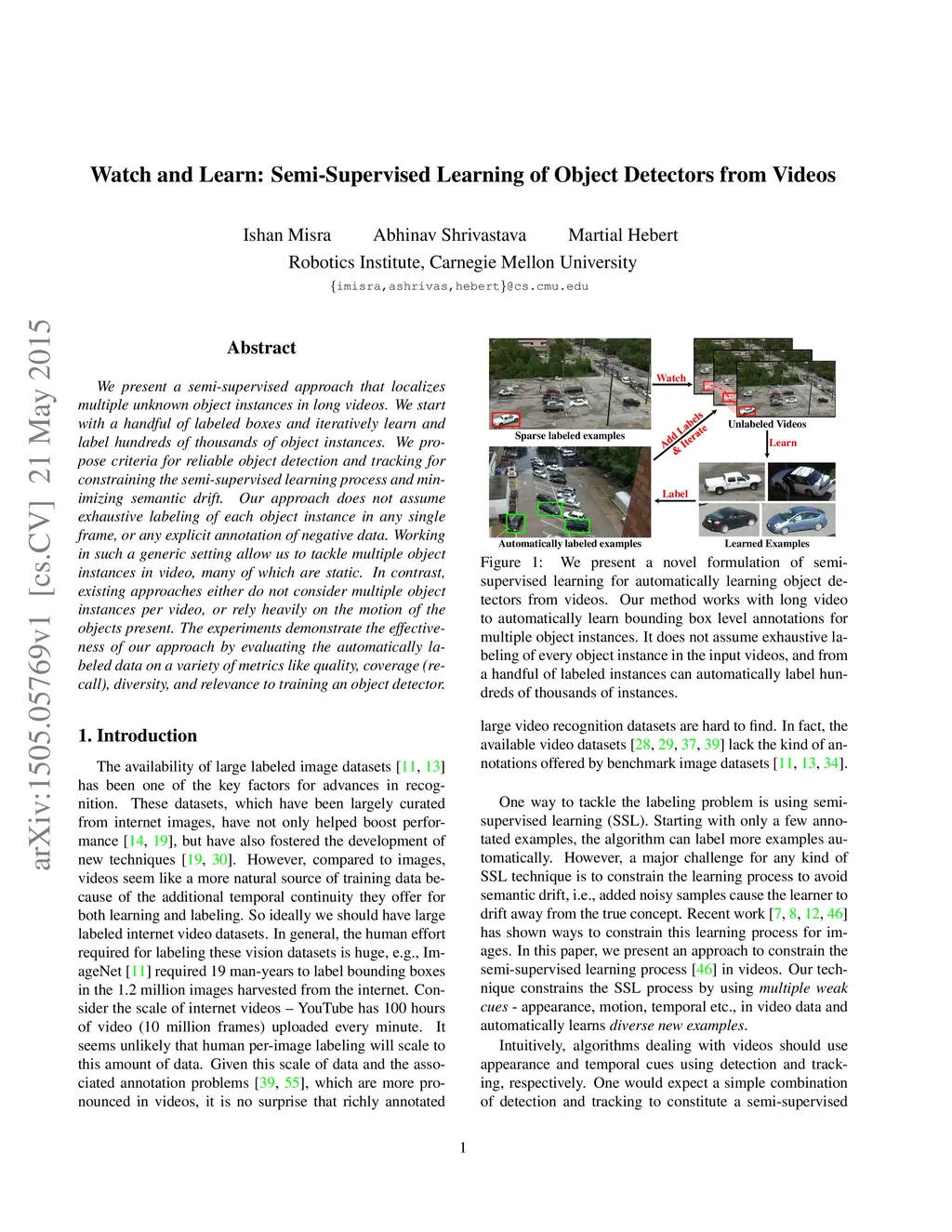 Watch and Learn: Semi-Supervised Learning of Object Detectors from
