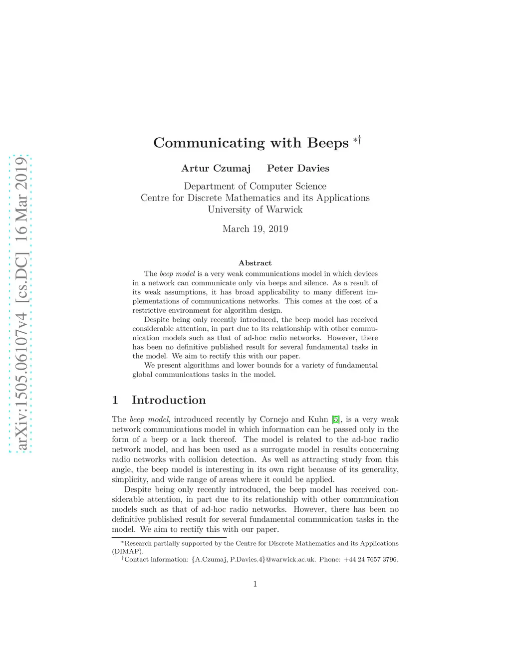 The \emph{beep model} is a very weak communications model in which devices in a network can communicate only via beeps and silence. As a result of its weak assumptions, it has broad applicability to many different implementations of communications networks. This comes at the cost of a restrictive environment for algorithm design. Despite being only recently introduced, the beep model has received considerable attention, in part due to its relationship with other communication models such as that of ad-hoc radio networks. However, there has been no definitive published result for several fundamental tasks in the model. We aim to rectify this with our paper. We present algorithms and lower bounds for a variety of fundamental global communications tasks in the model.