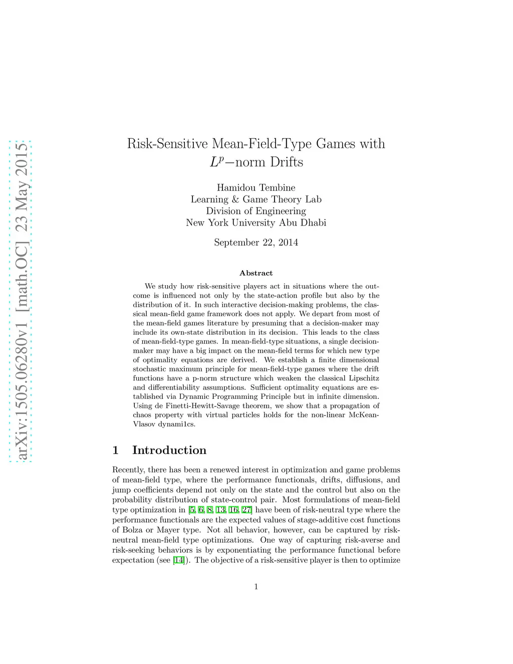 We study how risk-sensitive players act in situations where the outcome is influenced not only by the state-action profile but also by the distribution of it. In such interactive decision-making problems, the classical mean-field game framework does not apply. We depart from most of the mean-field games literature by presuming that a decision-maker may include its own-state distribution in its decision. This leads to the class of mean-field-type games. In mean-field-type situations, a single decision-maker may have a big impact on the mean-field terms for which new type of optimality equations are derived. We establish a finite dimensional stochastic maximum principle for mean-field-type games where the drift functions have a p-norm structure which weaken the classical Lipschitz and differentiability assumptions. Sufficient optimality equations are established via Dynamic Programming Principle but in infinite dimension. Using de Finetti-Hewitt-Savage theorem, we show that a propagation of chaos property with 'virtual' particles holds for the non-linear McKean-Vlasov dynamics.