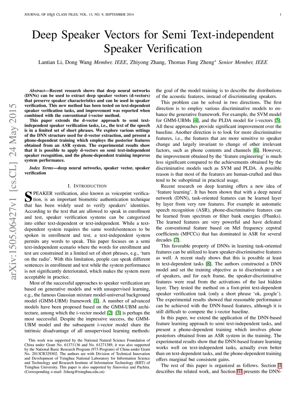 Deep Speaker Vectors for Semi Text-independent Speaker Verification