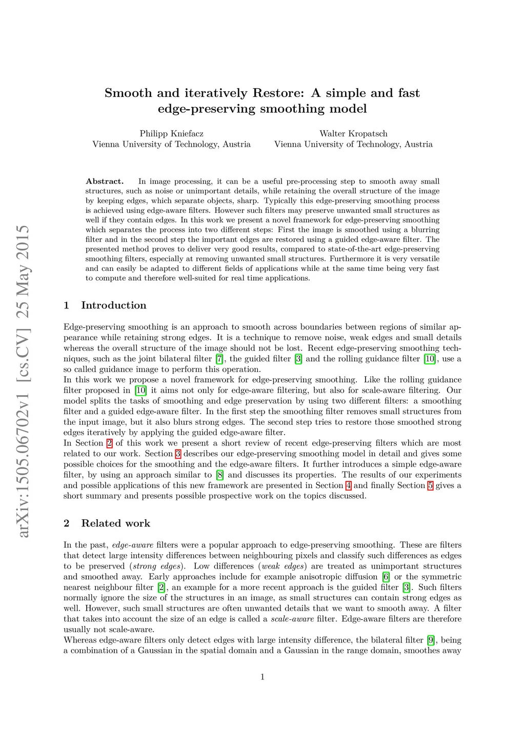 In image processing, it can be a useful pre-processing step to smooth away small structures, such as noise or unimportant details, while retaining the overall structure of the image by keeping edges, which separate objects, sharp. Typically this edge-preserving smoothing process is achieved using edge-aware filters. However such filters may preserve unwanted small structures as well if they contain edges. In this work we present a novel framework for edge-preserving smoothing which separates the process into two different steps: First the image is smoothed using a blurring filter and in the second step the important edges are restored using a guided edge-aware filter. The presented method proves to deliver very good results, compared to state-of-the-art edge-preserving smoothing filters, especially at removing unwanted small structures. Furthermore it is very versatile and can easily be adapted to different fields of applications while at the same time being very fast to compute and therefore well-suited for real time applications.
