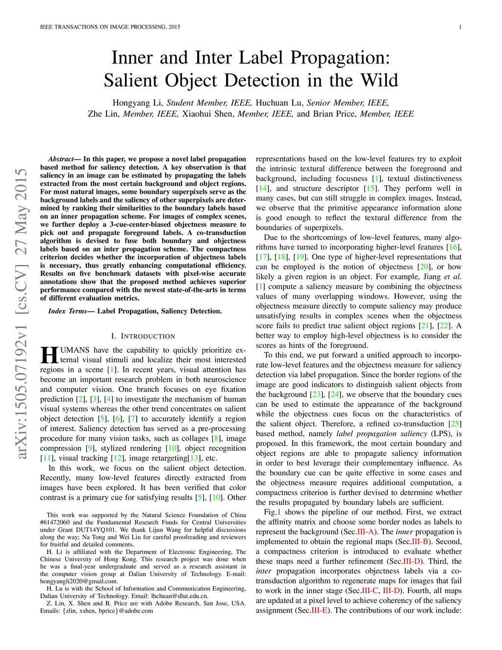 Inner and Inter Label Propagation: Salient Object Detection in the Wild