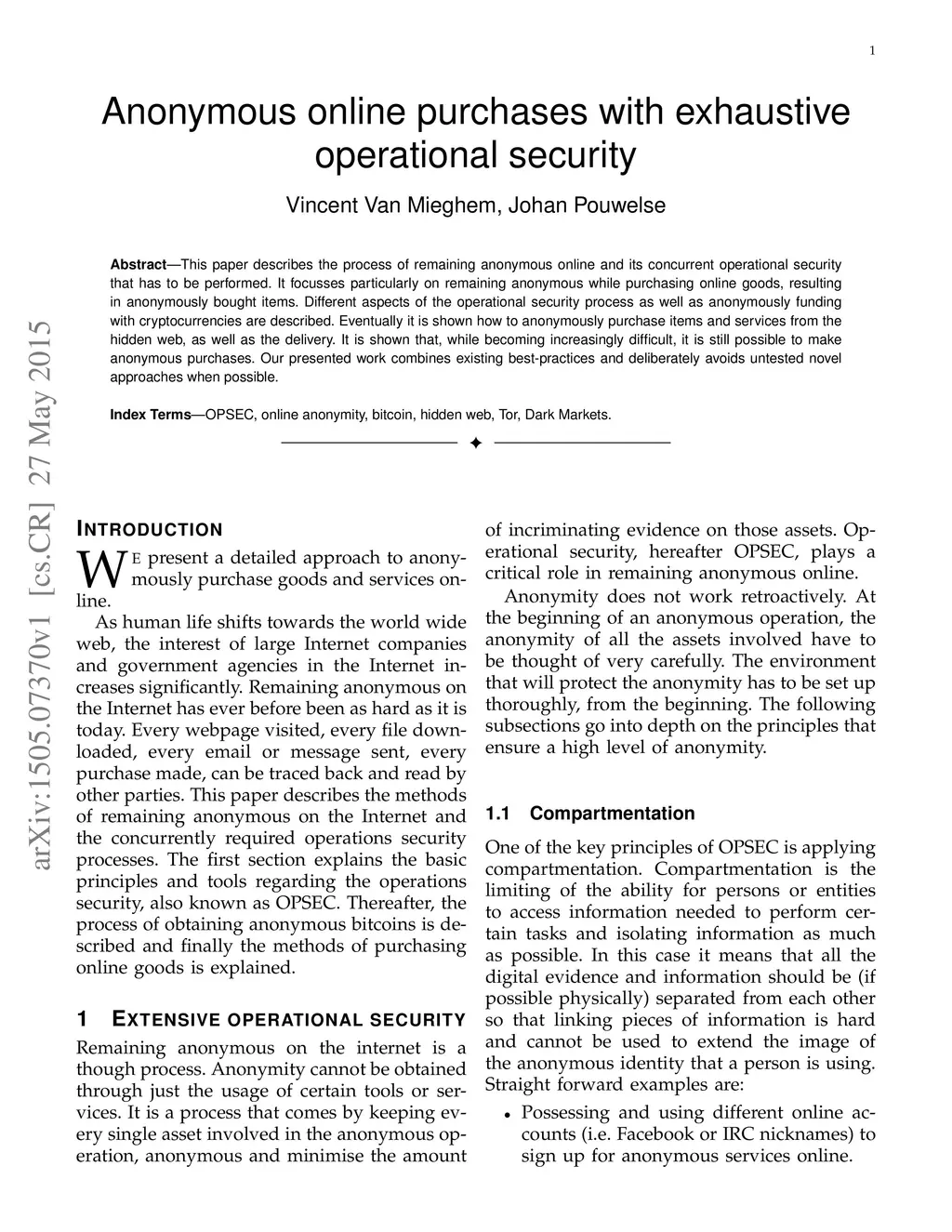 Anonymous online purchases with exhaustive operational security