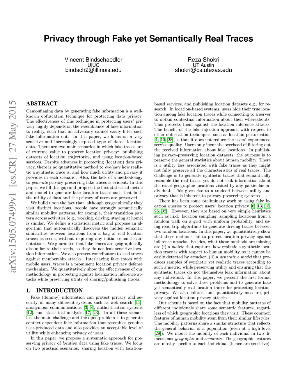 Privacy through Fake yet Semantically Real Traces