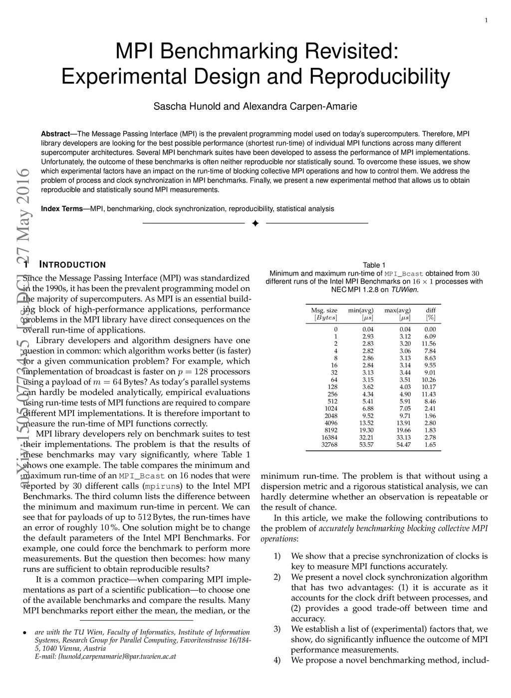MPI Benchmarking Revisited: Experimental Design and Reproducibility