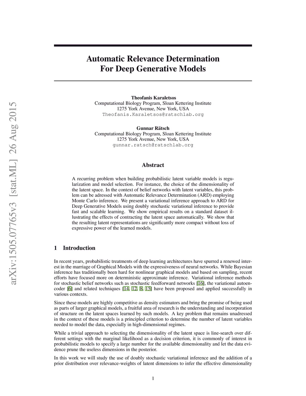 A recurring problem when building probabilistic latent variable models is regularization and model selection, for instance, the choice of the dimensionality of the latent space. In the context of belief networks with latent variables, this problem has been adressed with Automatic Relevance Determination (ARD) employing Monte Carlo inference. We present a variational inference approach to ARD for Deep Generative Models using doubly stochastic variational inference to provide fast and scalable learning. We show empirical results on a standard dataset illustrating the effects of contracting the latent space automatically. We show that the resulting latent representations are significantly more compact without loss of expressive power of the learned models.