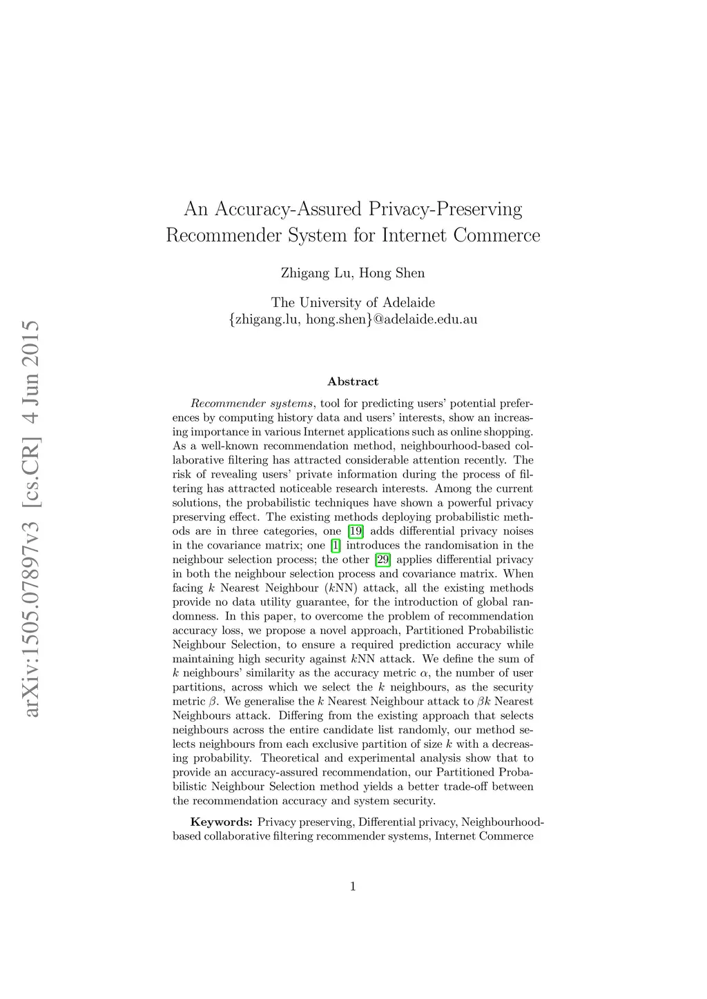 An Accuracy-Assured Privacy-Preserving Recommender System for Internet